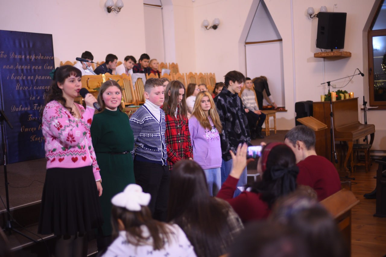 Це служіння з любов’ю підготували наша молодь і підлітки. Вони читали Боже Слово, співали та щиро служили, наповнюючи дім молитви світлом і надією. Їхній спів нагадував голоси ангелів, які колись сповістили пастухам дивовижну звістку про народження Спасителя. Так і ми, в простоті сердець, із радістю знову згадували цю благу новину. А після служіння наші підлітки благословили церкву смаколиками та ялинковими іграшками, які зробили власноруч!