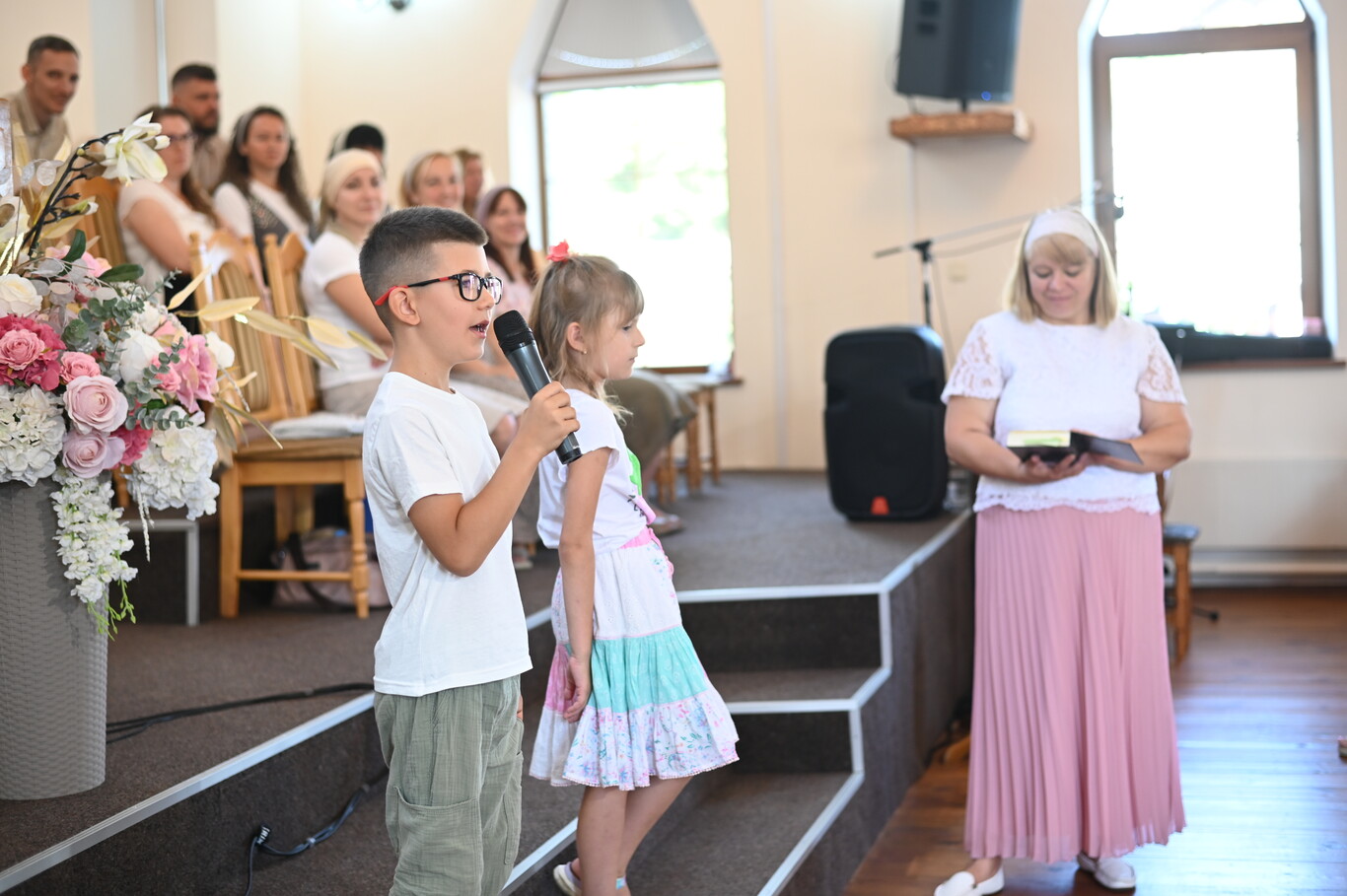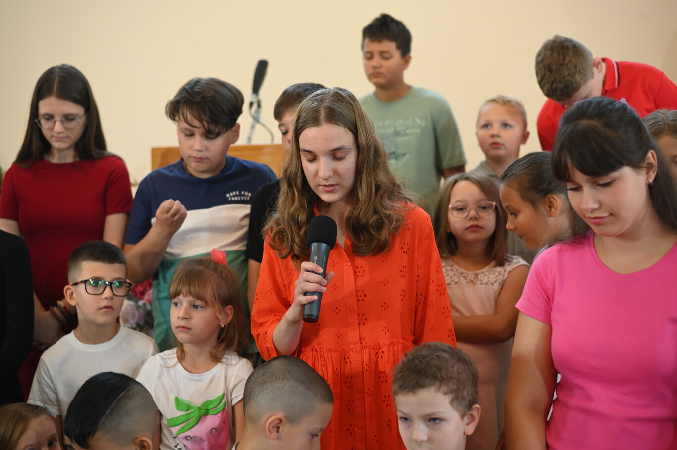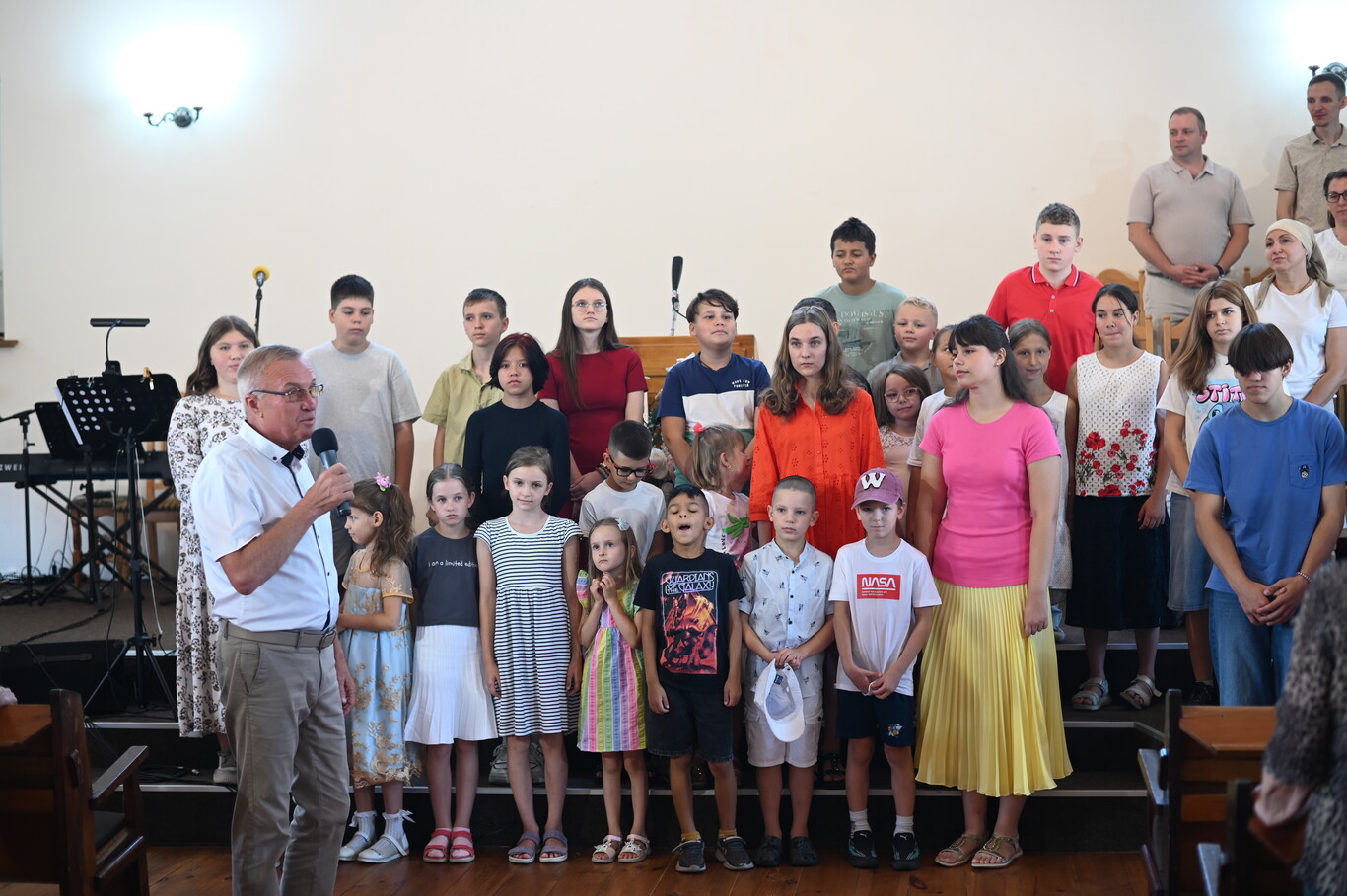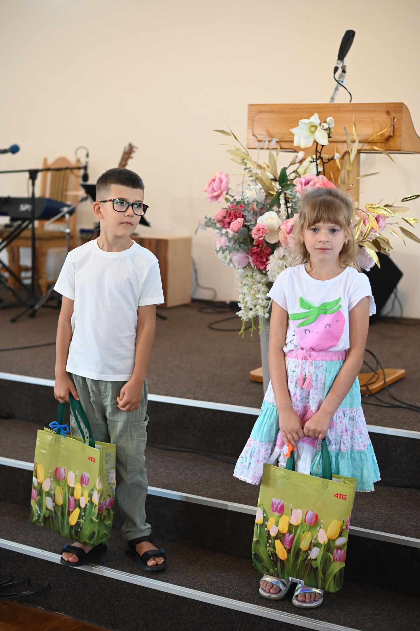 Потім пастор церкви запросив всіх учнів і студентів вийти вперед для молитви благословіння. В настанові Петро Васильович звернув увагу дітей на дві речі, які чекає від них Господь, а саме: слухняність і вдячне серце.