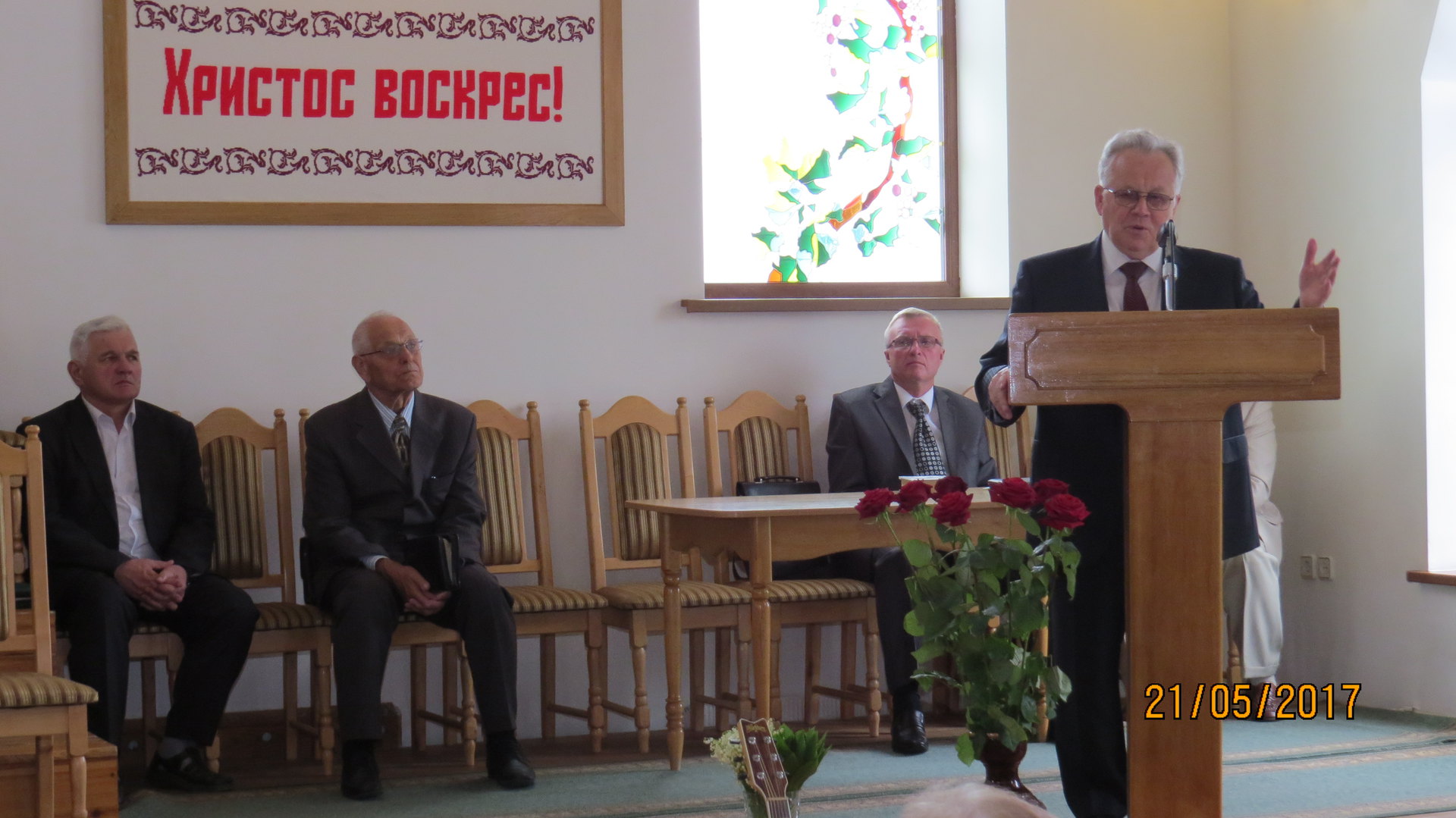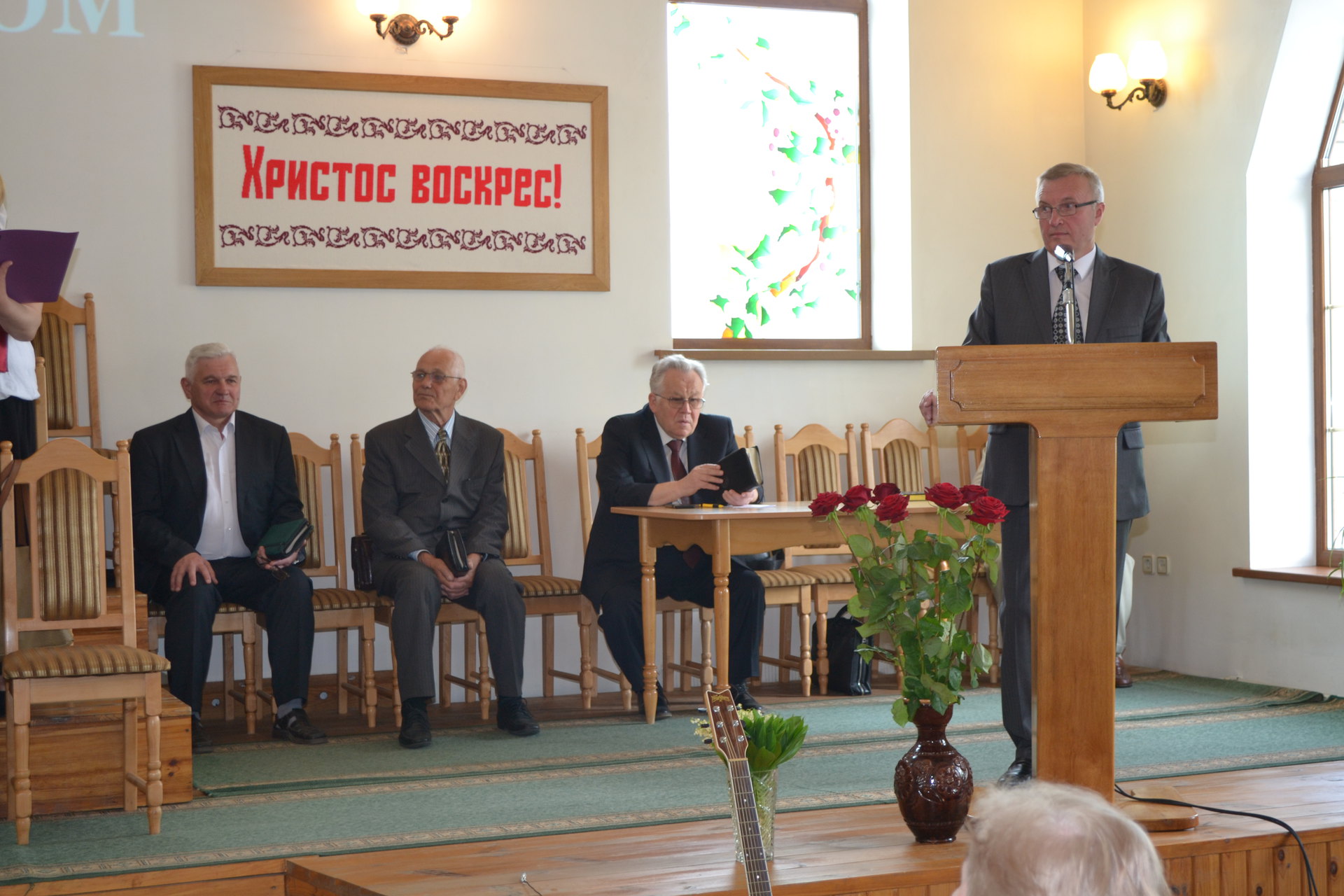 Николай Константинович Величко, пастор церкви "Храм спасения", задал вопрос:" 25 лет - это много или мало?" 25 лет - это смена поколений, изменения в мире: наступил век информационных технологий, глобализации, век кризиса христианской церкви в Европе. Но в этом изменчевом мире есть что-то неизменное и постоянное: личность Иисуса Христа, Слово Божье и церковь всегда остаётся церковью. Николай Константинович зачитал послание 7-ми церквям, которое записано в книге Откровения. Лишь двум церквям из семи не было сказано ни одного упрёка, поэтому так важно и нам беречь Слово Божье в своём сердце: "Се, гряду скоро, держи, что имеешь, дабы кто не восхитил венца твоего" (Откровение 3:11)