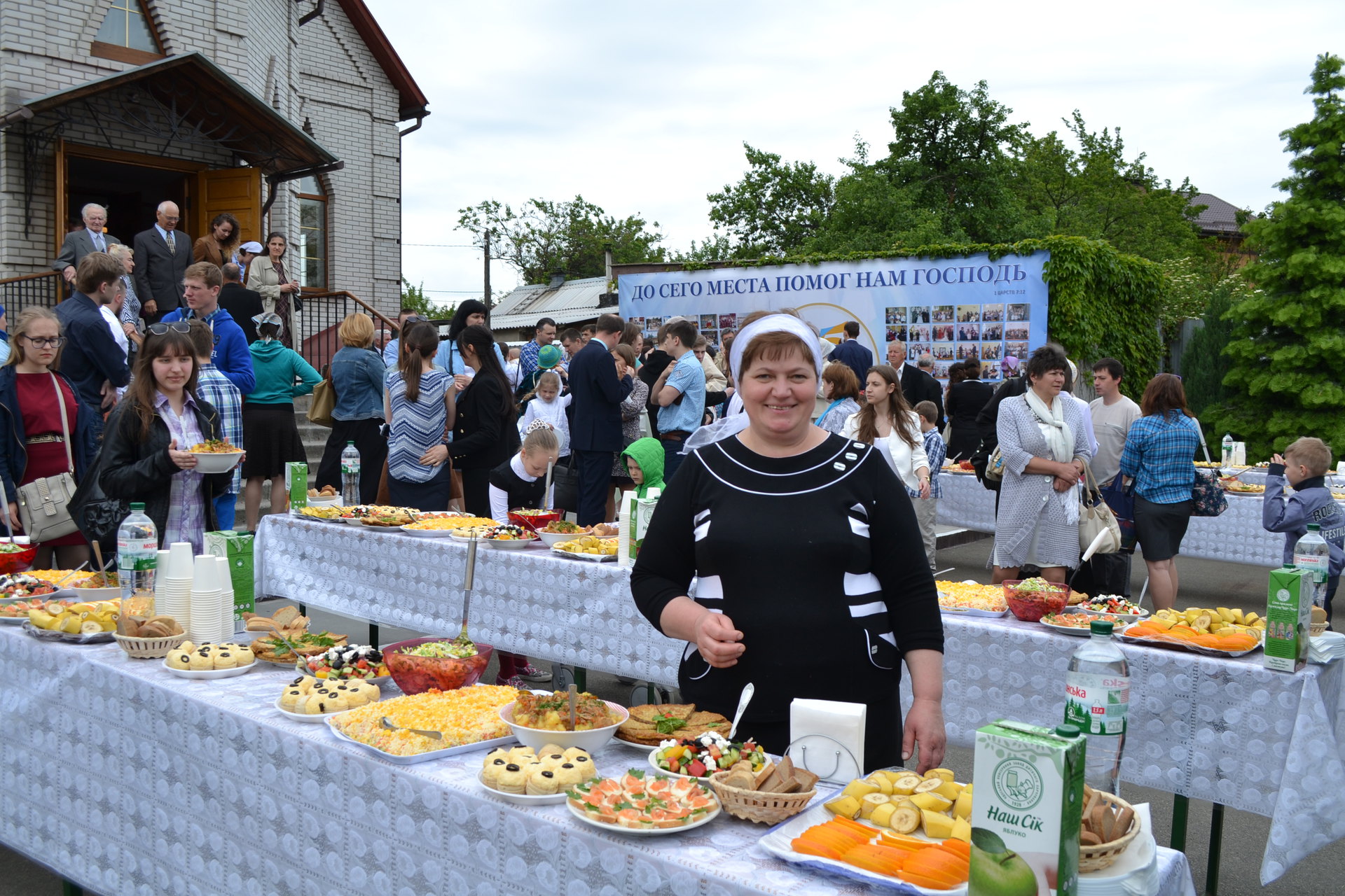 После того как все подкрепились, братья и сёстры вновь собрались в здании церкви чтоб всем вместе ещё раз прославить Господа, поделиться сведетельствами и воспоминаниями о том как они стали членами церкви "Друзі Христа".
