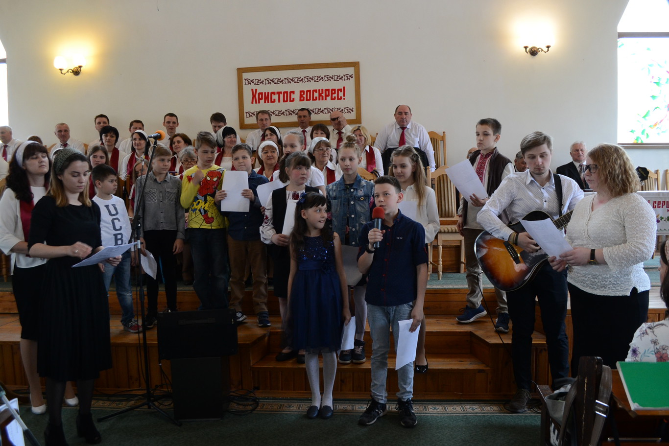 Во время служения Господа славили основной и детский хора, все группы Воскресной школы прославляли Воскресшего Иисуса Христа пением и стихотворениями.
