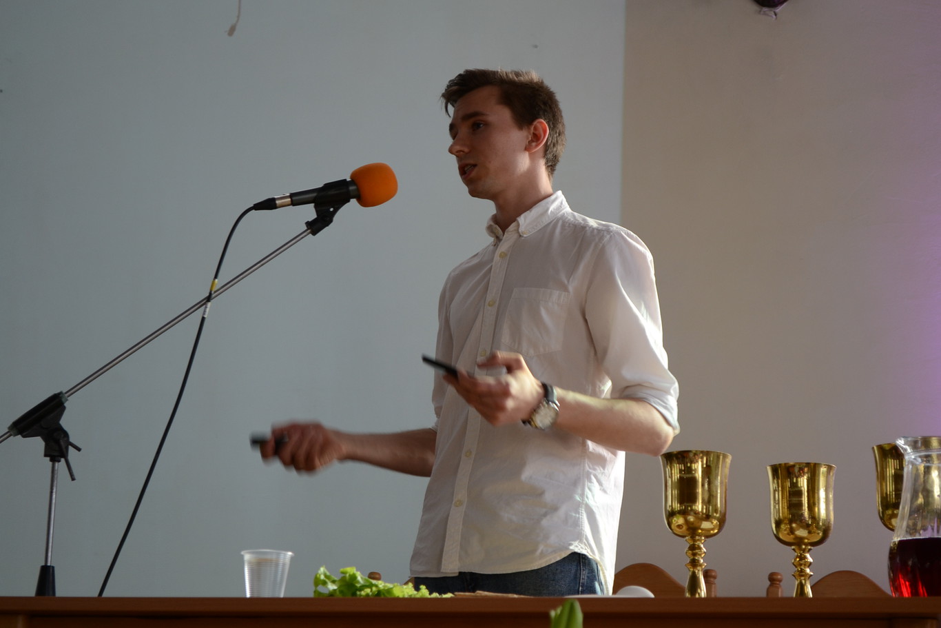 Вечернее богослужение проводила молодёжь на тему "Лишённый комфорта". Мы узнали много еврейских пасхальных традиций и обычаев, говорили про "Песах" (ивр.миновал, прошёл мимо) и "Седер" (порядок) - вечернюю трапезу, на которую собираются, когда возвращаются с Синагоги и собираются за столом. У евреев есть определённые блюда, которые они едят во время "Седера" и четыре чаши с вином. Так же они вместе молятся и поют псалмы. У нас тоже была возможность прославить Бога на иврите известным многим псалом "Этот день сотворил Господь".