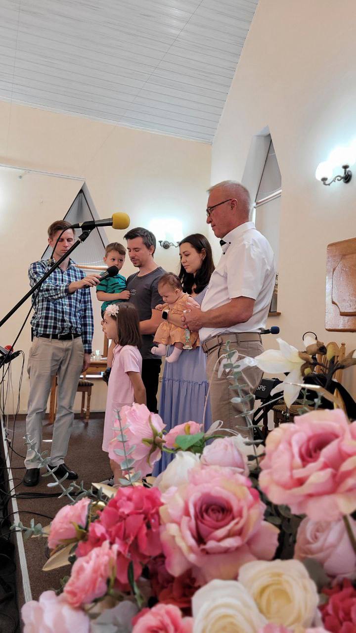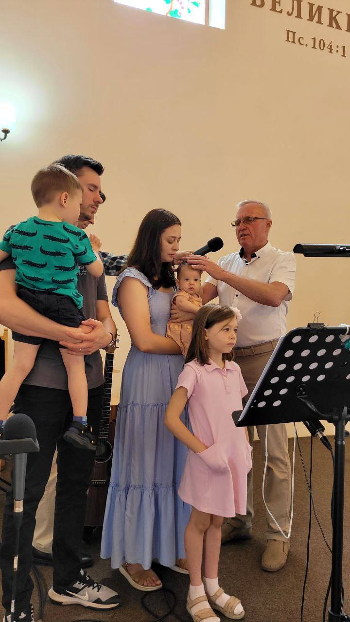 17-го серпня в нашій церкві відбулася молитва благословіння над маленькою Еммою Сторонюк. Молитва благословіння дитини - це прояв довіри Господу батьками, які віддають життя своєї дитинки в руки Божі і бажають виховувати її під керівництвом Духа Святого. Давайте і ми будемо не забувати молитися про маленьку Емму та її родину!