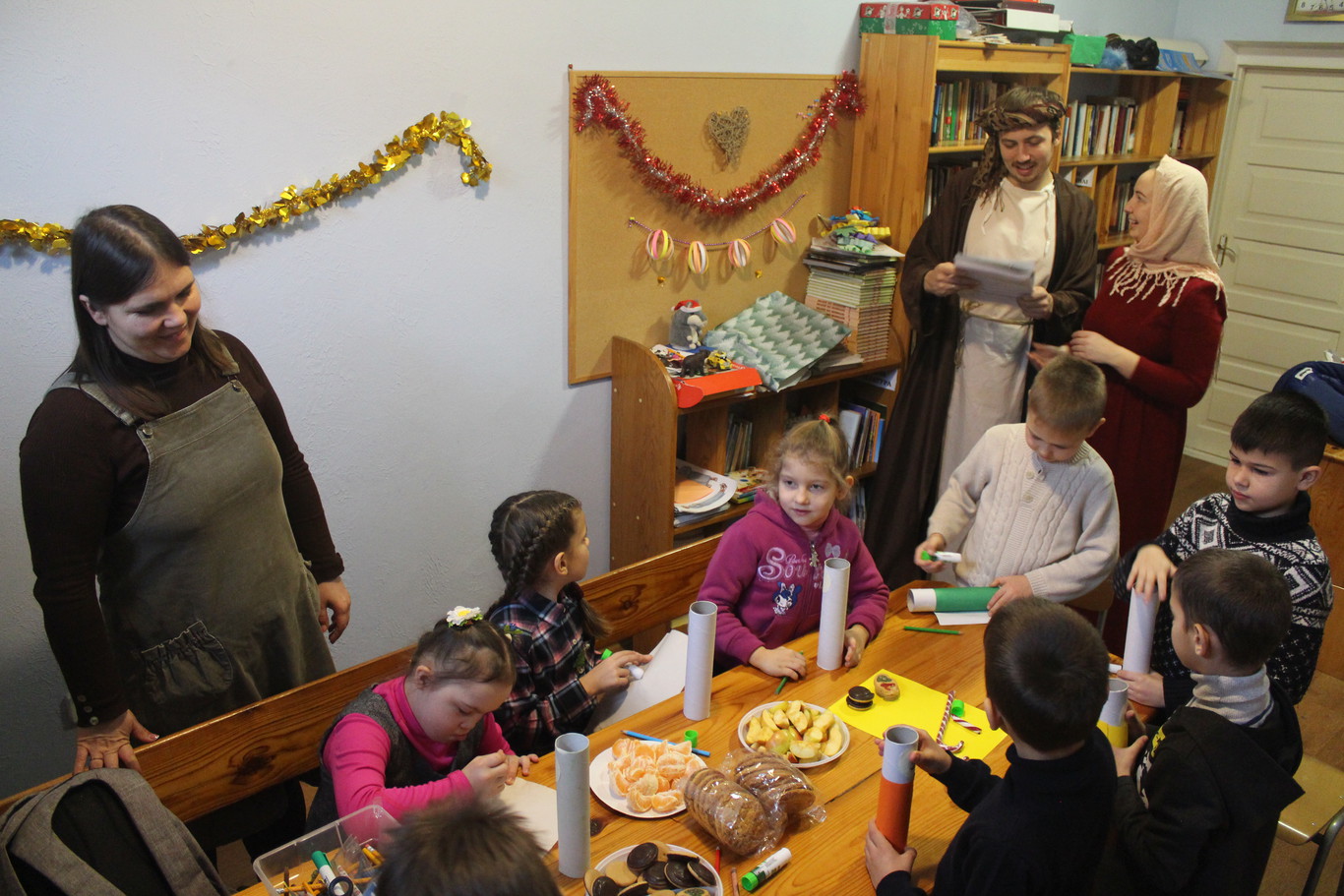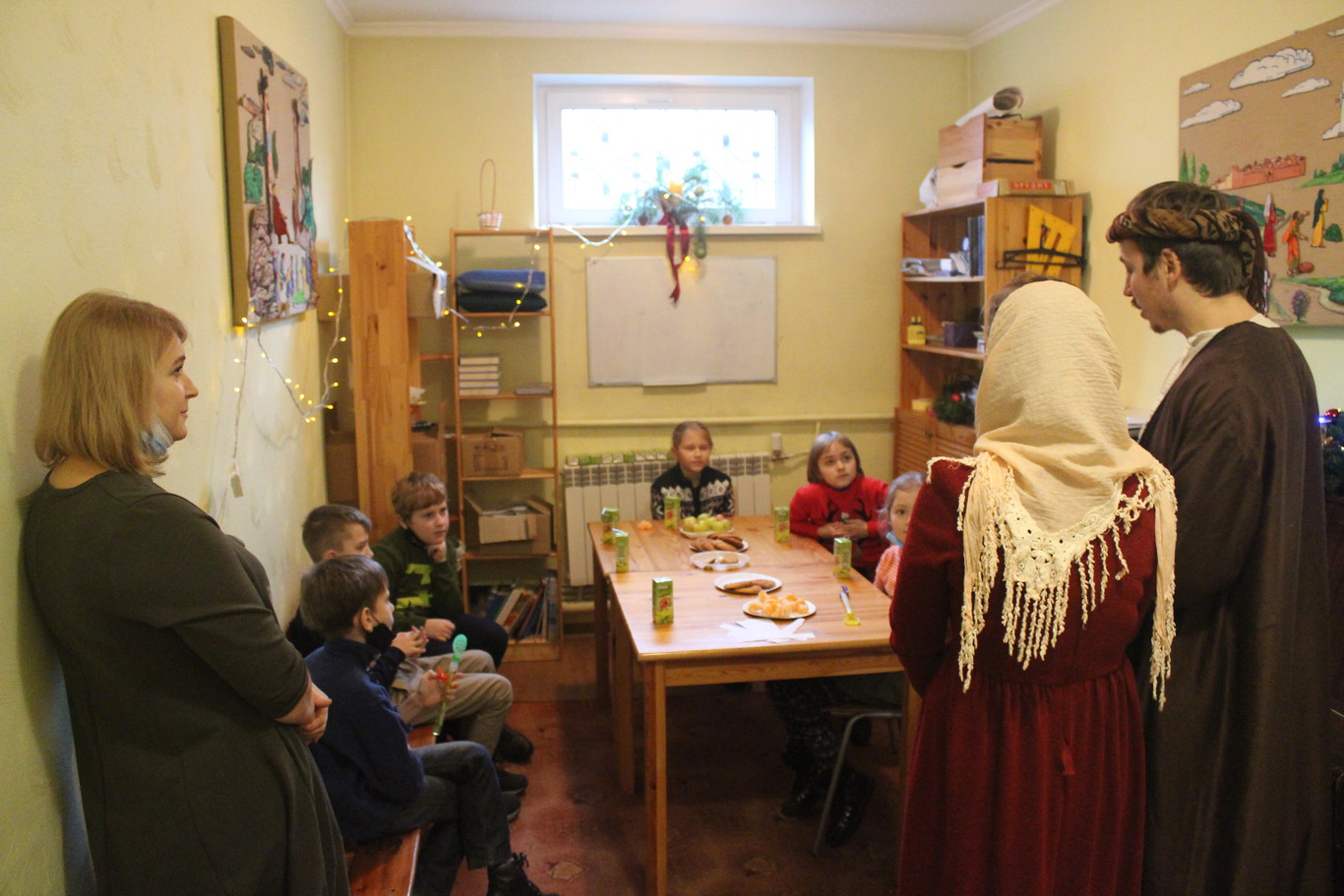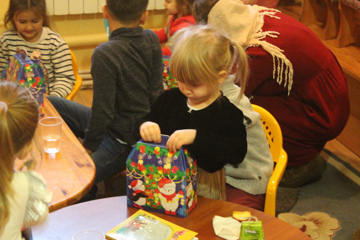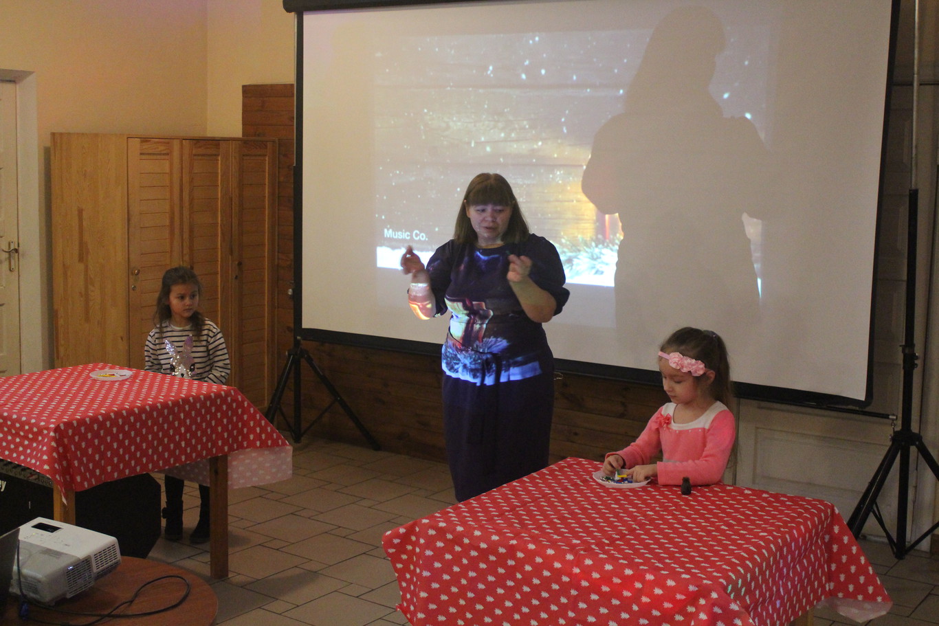 Пение, интересные игры, весёлые конкурсы, а самое главное - история о рождении Иисуса Христа создали праздничное настроение. А какой же праздник без сюрпризов? Особенными гостями на празднике стали Мария и Иосиф, которые провели увлекательную викторину и вручили детям подарки.