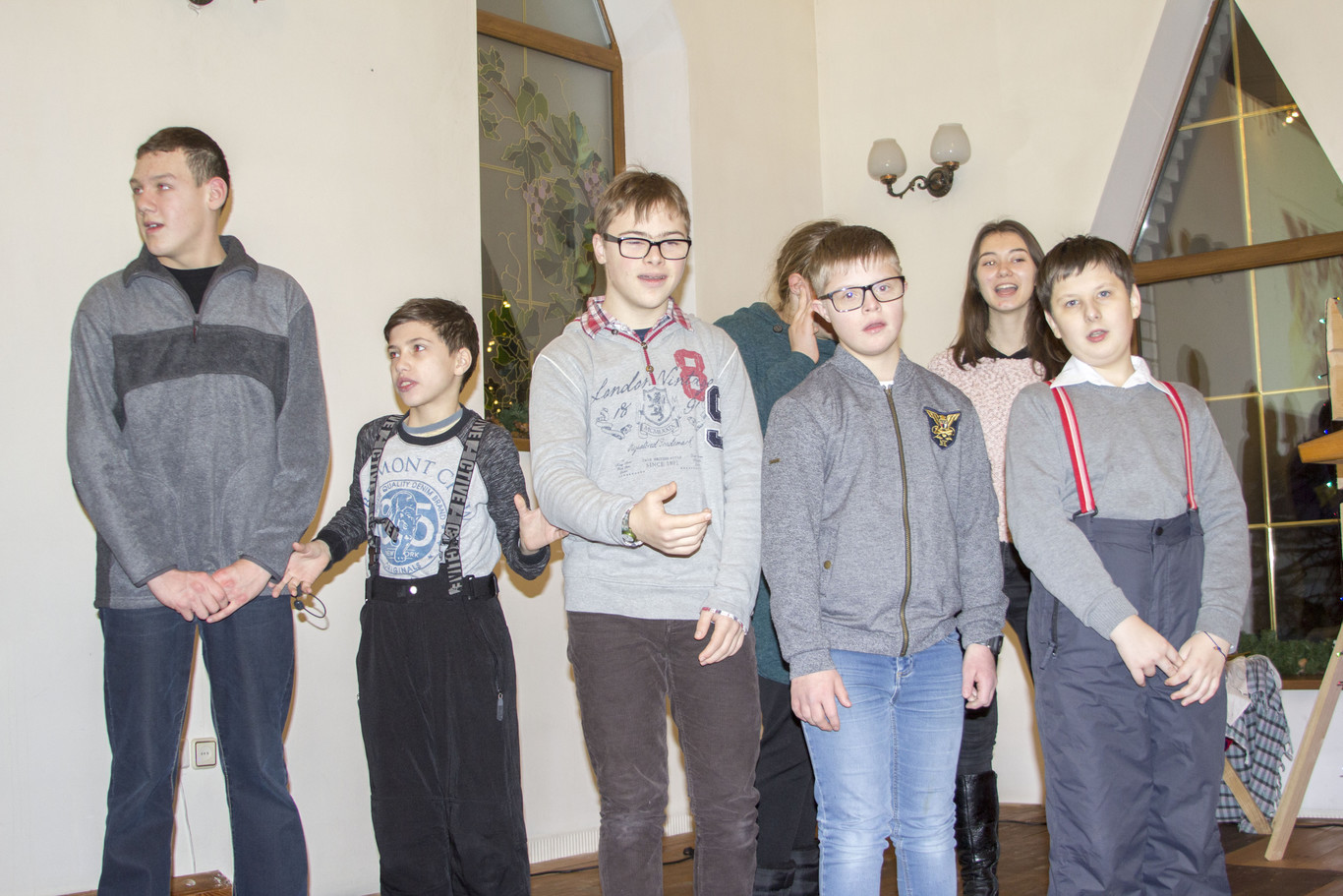 Когда настала запланированная дата волонтёры очень переживали, но Господь благословил весь день – от начала и до конца. Особенные детки сами участвовали в программе, все вместе прославляли Господа пением, а также услышали историю Рождества Иисуса, которая сопровождалась театральной постановкой деток с воскресной школы. В самом конце праздника всех ждало угощение сладостями с какао.