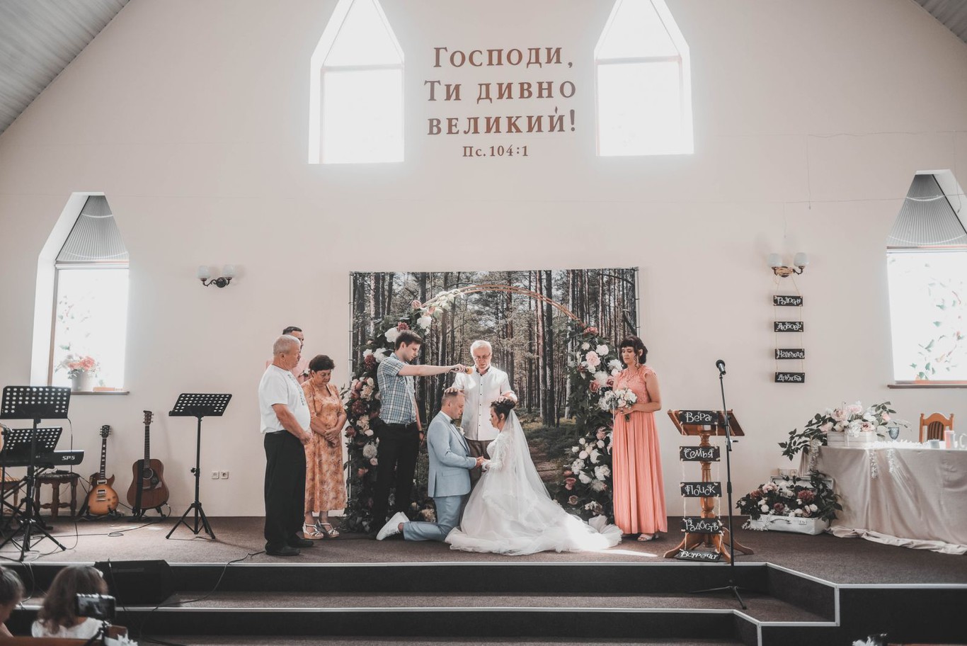 Пастор церкви Недашківський Петро Васильович дав настанови молодим на основі Божого Слова та звершив молитву. Наречені, в присутності рідних та друзів, дали обіцянки один одному перед лицем Божим. Після вінчання всі бажаючі могли привітати молодих.
